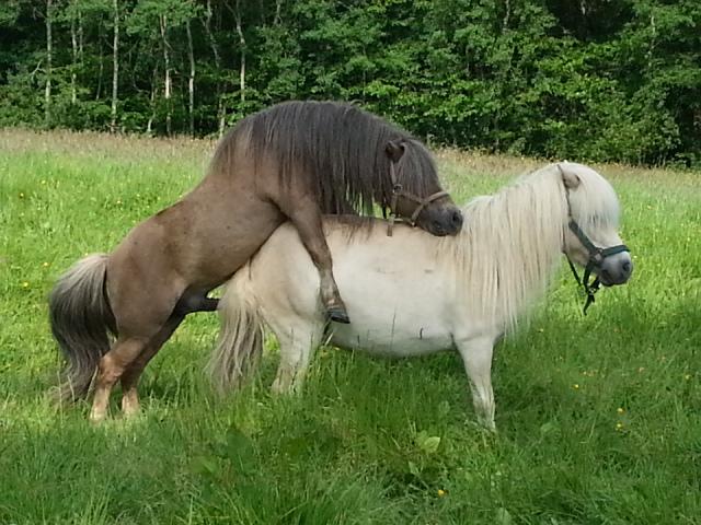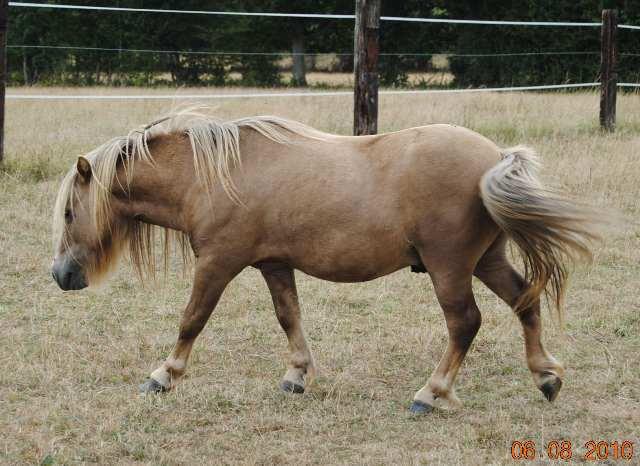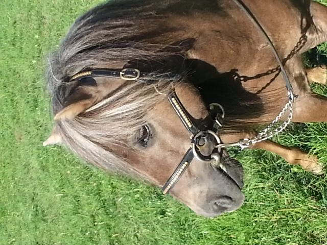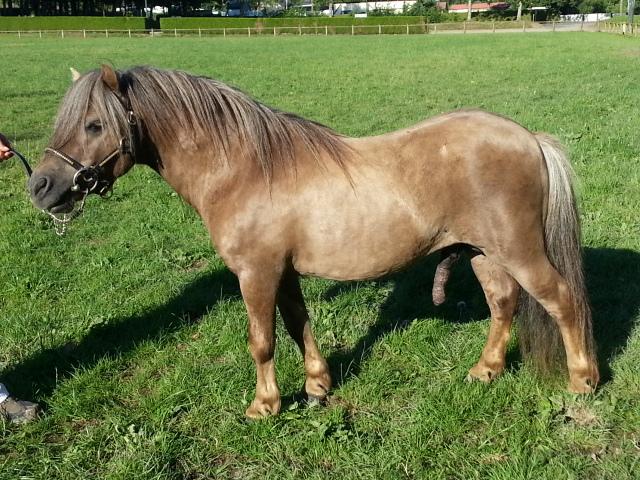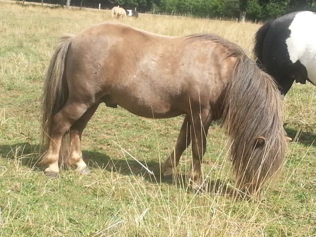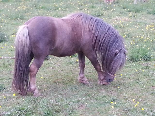 Etalon Shetland, de robe MUSHROOM foncée, toisant 86 cm.