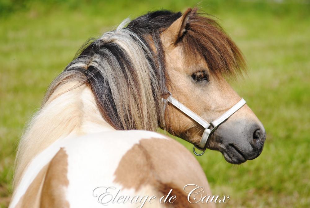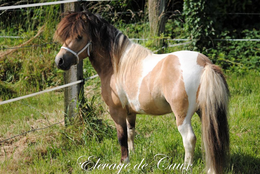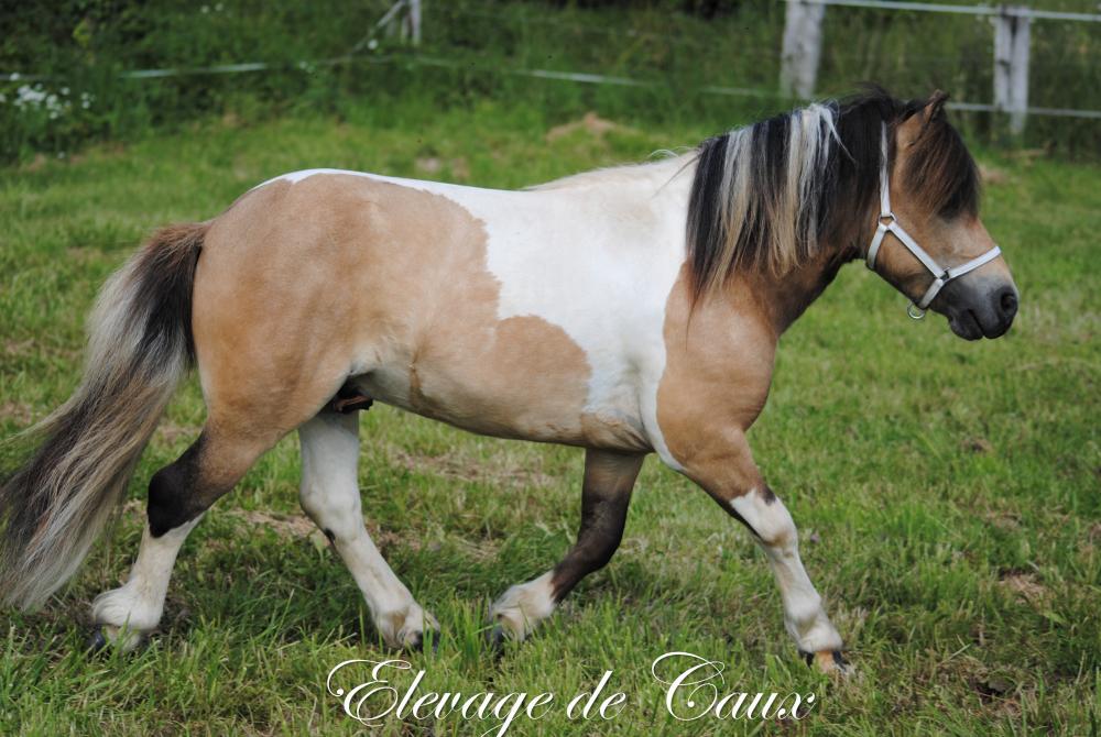 JANGO est notre plus petit étalon. Je l'ai choisi pour saillir mes primipares et pour son panel couleur intéressant. Il est isabelle pie double homozygote : Ee, AA, nCr, ToTo