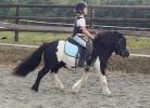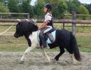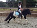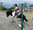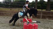 Poney débourré qui enchaîne un petit parcours.