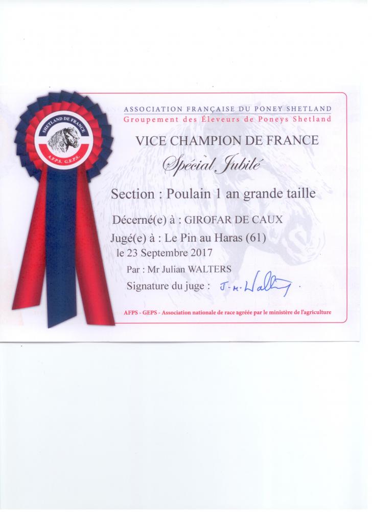 GIROFAR est vice champion de France des mâles de 1 an en 2017