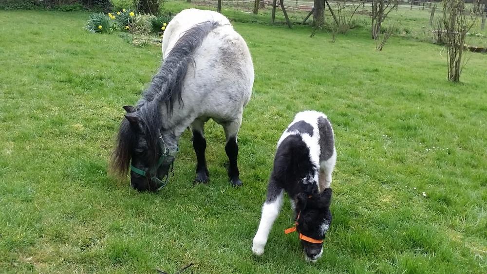 GLAMOUR est blue roan pie. Il est possible qu'elle soit homozygote sur le noir (non testé).