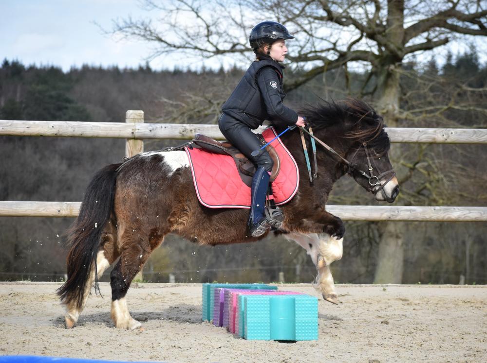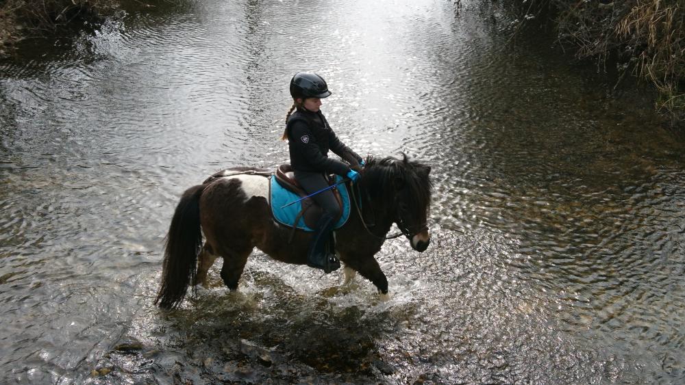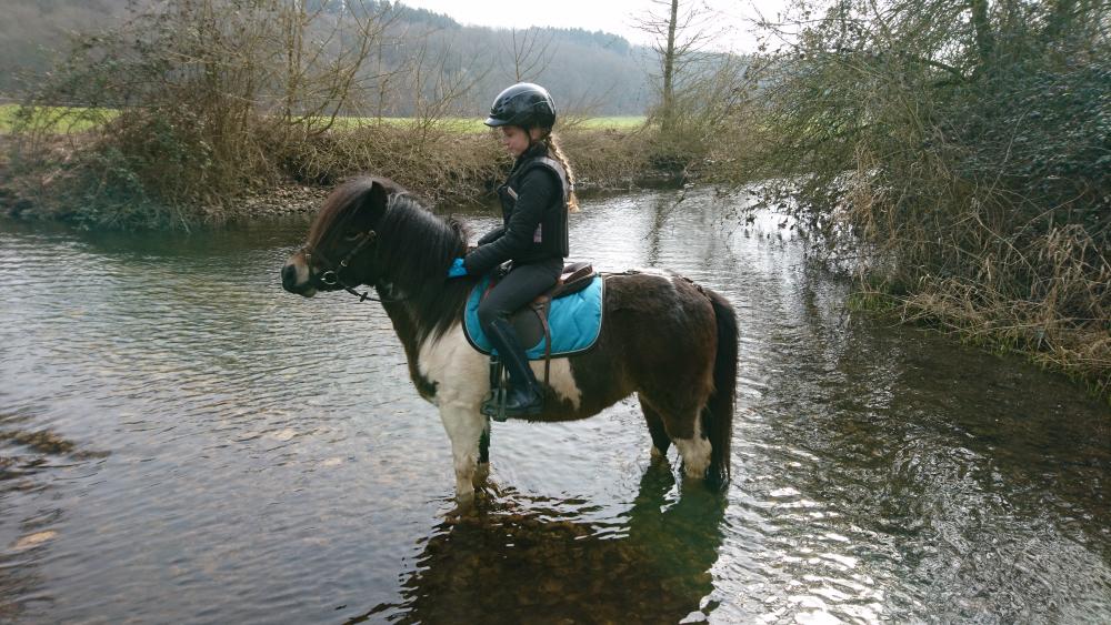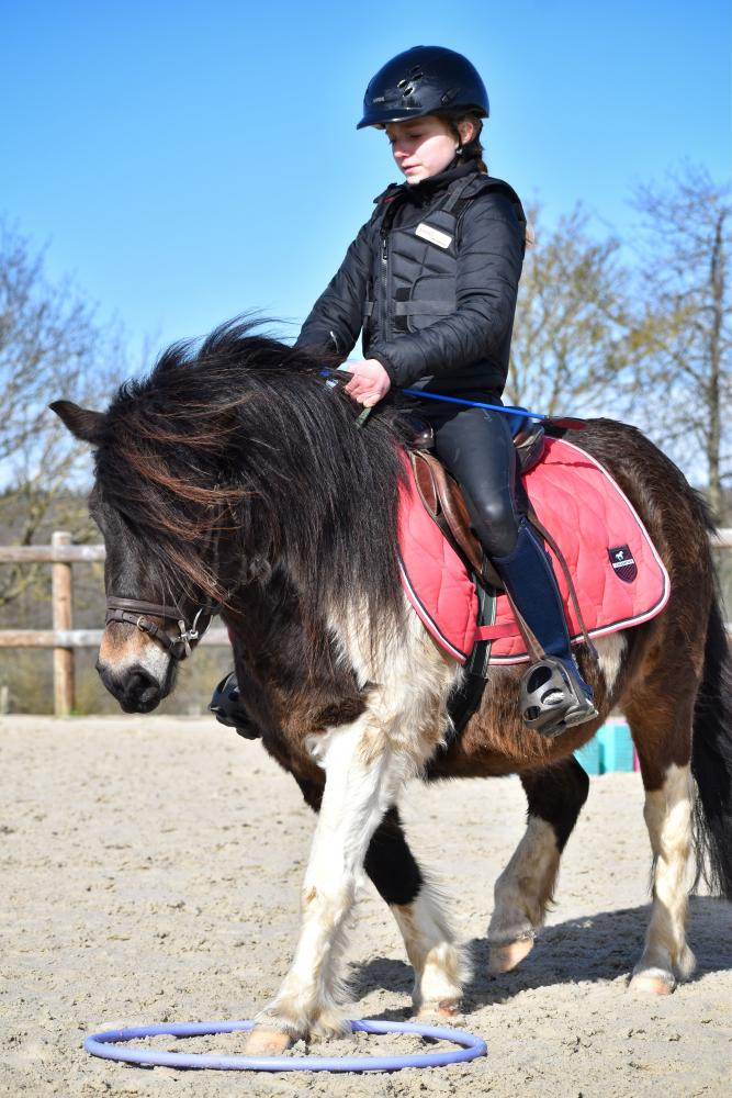IMPULSION a été débourrée à l'âge de 3 ans mais n'a pas retravaillé depuis. C'est une très gentille ponette, pratique au quotidien et en bonne santé.