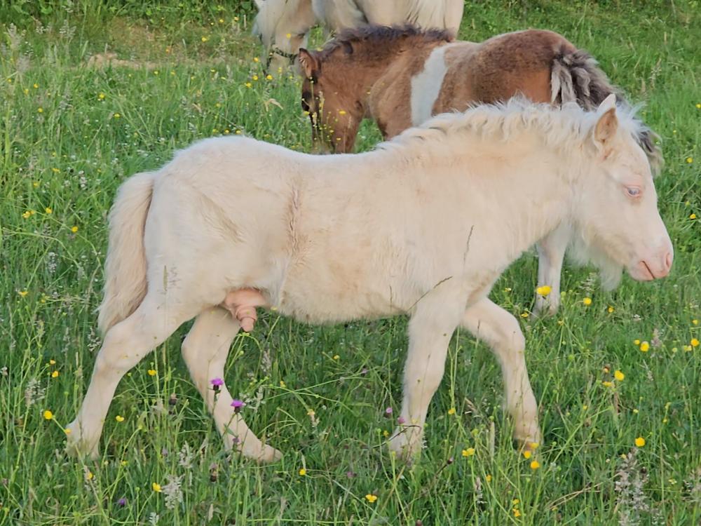 Il est actuellement entier et ne peux pas encore être castré car un testicule n'est pas descendu. Il devra donc être mis en compagnie d'un autre mâle calme ou d'un hongre.