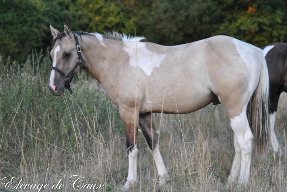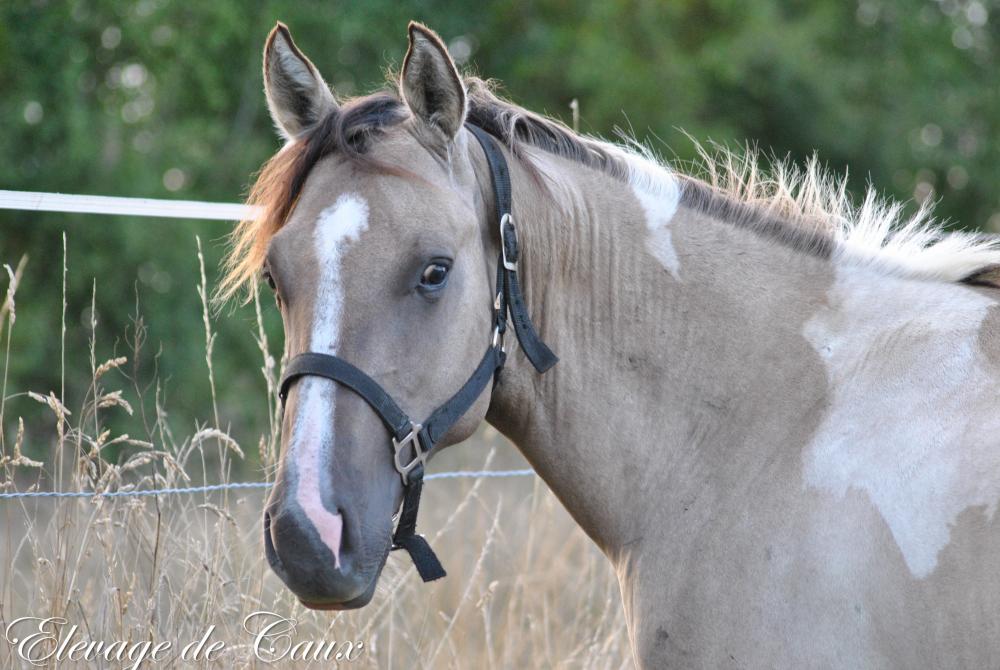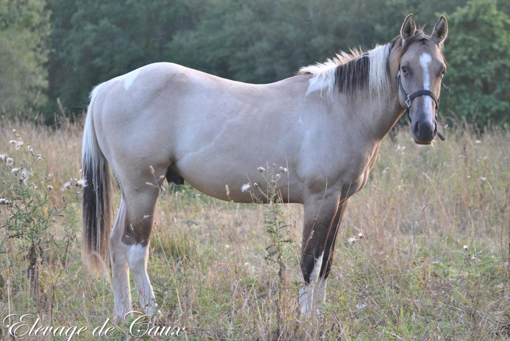 ITAN est smocky grullo tobiano. Son profil génétique est Ee, aa, nCr, nD