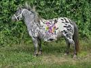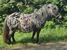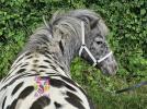 Elle est échographiée pleine de notre étalon isabelle few spot triple homozygote AXIOMA'S SIMBA qui toise 117 cm pour un terme au 16 mars 2024. Le poulain sera à déclarer en OC monte libre. Il sera éventuellement inscriptible en Welsh Part Bred car l'étalon possède 37,5% de sang Welsh. A voir avec le stud book Welsh. Le poulain est garanti léopard ou few spot sur base noire. Ce sera son 1er poulain.