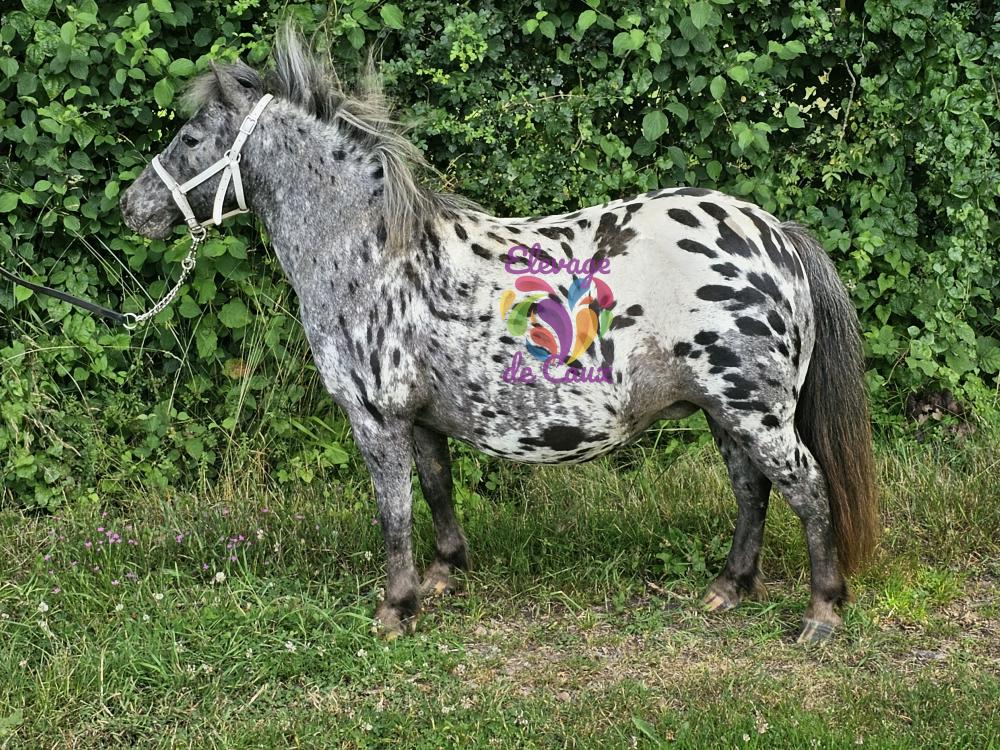 Elle est échographiée pleine de notre étalon isabelle few spot triple homozygote AXIOMA'S SIMBA qui toise 117 cm pour un terme au 16 mars 2024. Le poulain sera à déclarer en OC monte libre. Il sera éventuellement inscriptible en Welsh Part Bred car l'étalon possède 37,5% de sang Welsh. A voir avec le stud book Welsh. Le poulain est garanti léopard ou few spot sur base noire. Ce sera son 1er poulain.